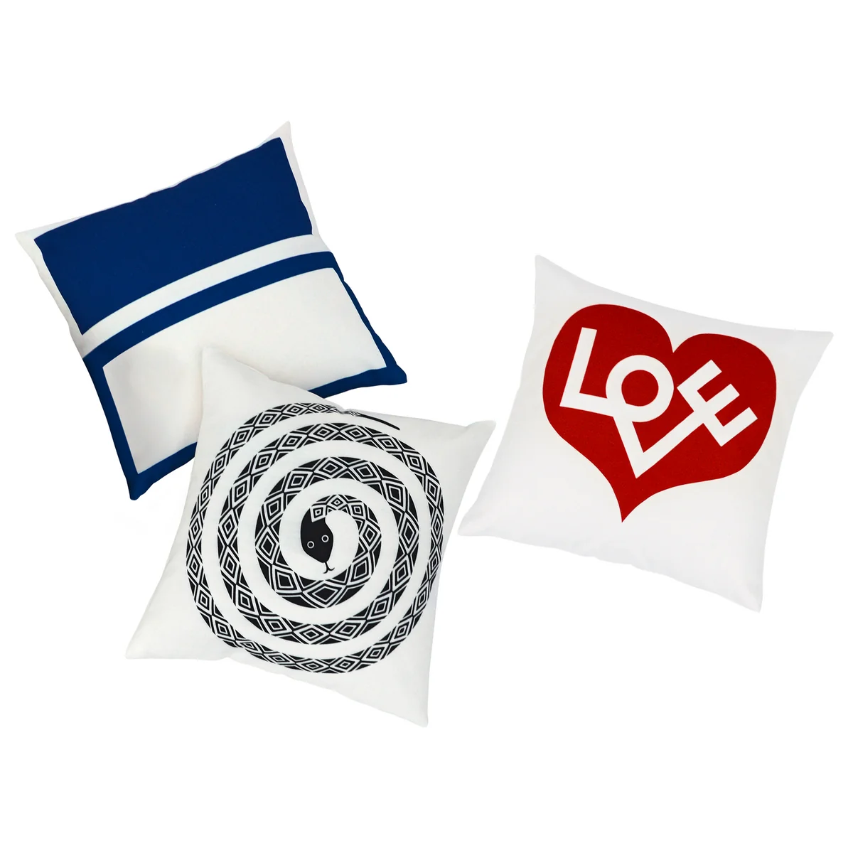 Das Love Kissen besteht aus 100% Baumwolle und erscheint mit einem grossen, roten Herz und dem bekannten Love-Schriftzug in dessen Mitte. Am unteren Rand des Kissens befindet sich ausserdem ein Schriftzug, die Signatur Alexander Girards.