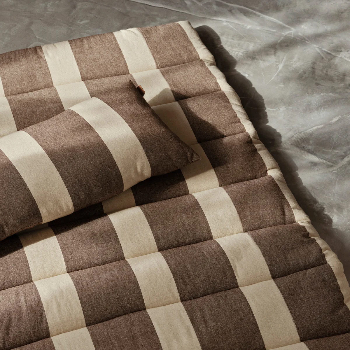 Unsere Strand gesteppte Matratze von Ferm Living ist mit ihrem simplen Streifenmuster eine perfekte Mischung aus Komfort und Eleganz. Die Strand-Serie feiert den friedlichen Lebensstil und die Freude an den grundlegenden Freuden des Lebens. Diese gesteppte Matratze besteht aus Bio-Baumwolle mit einer grosszügigen Füllung aus recyceltem Polyester. Ein passendes Kissen kann separat erworben werden.