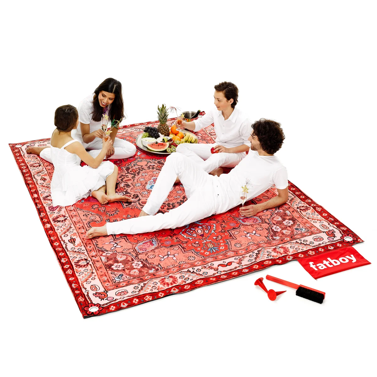 Das speziell für Picnic Lounge von Fatboy entwickelte Muster wirkt auf den ersten Blick wie ein klassischer Perser-Teppich. Allerdings scheint das Muster nur traditionell, denn auf den zweiten Blick werden Sie viele originelle Details in dem einzigartigen Fatboy-Muster entdecken
