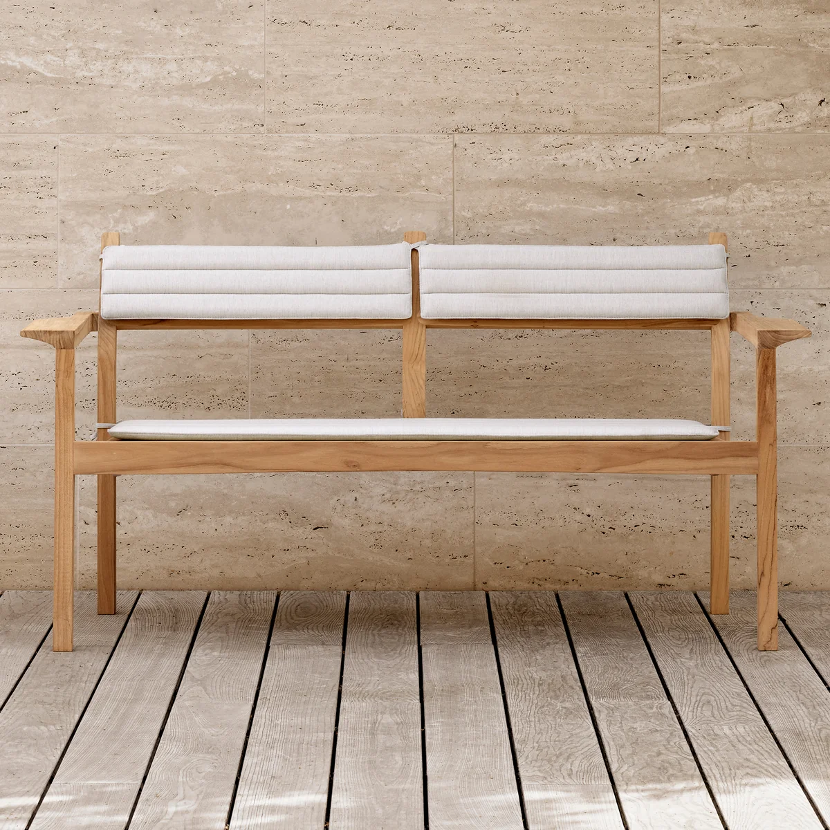 Die AH701 Auflagen für Gartenbank des dänischen Herstellers Carl Hansen bieten maximalen Komfort. Das Rücken- und Sitzkissen werden mit HR-Schaum befüllt. Der Bezug des Kissens besteht aus Agora Life Oat 1760 (78% Polyacryl / 22% recyceltes Polyacryl). Die Kissen passen ideal zum AH701 Gartenbank.