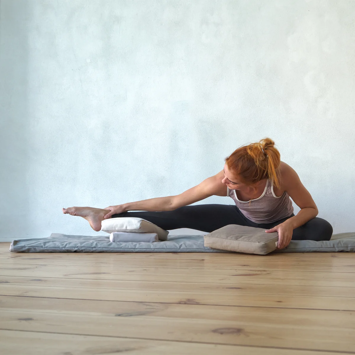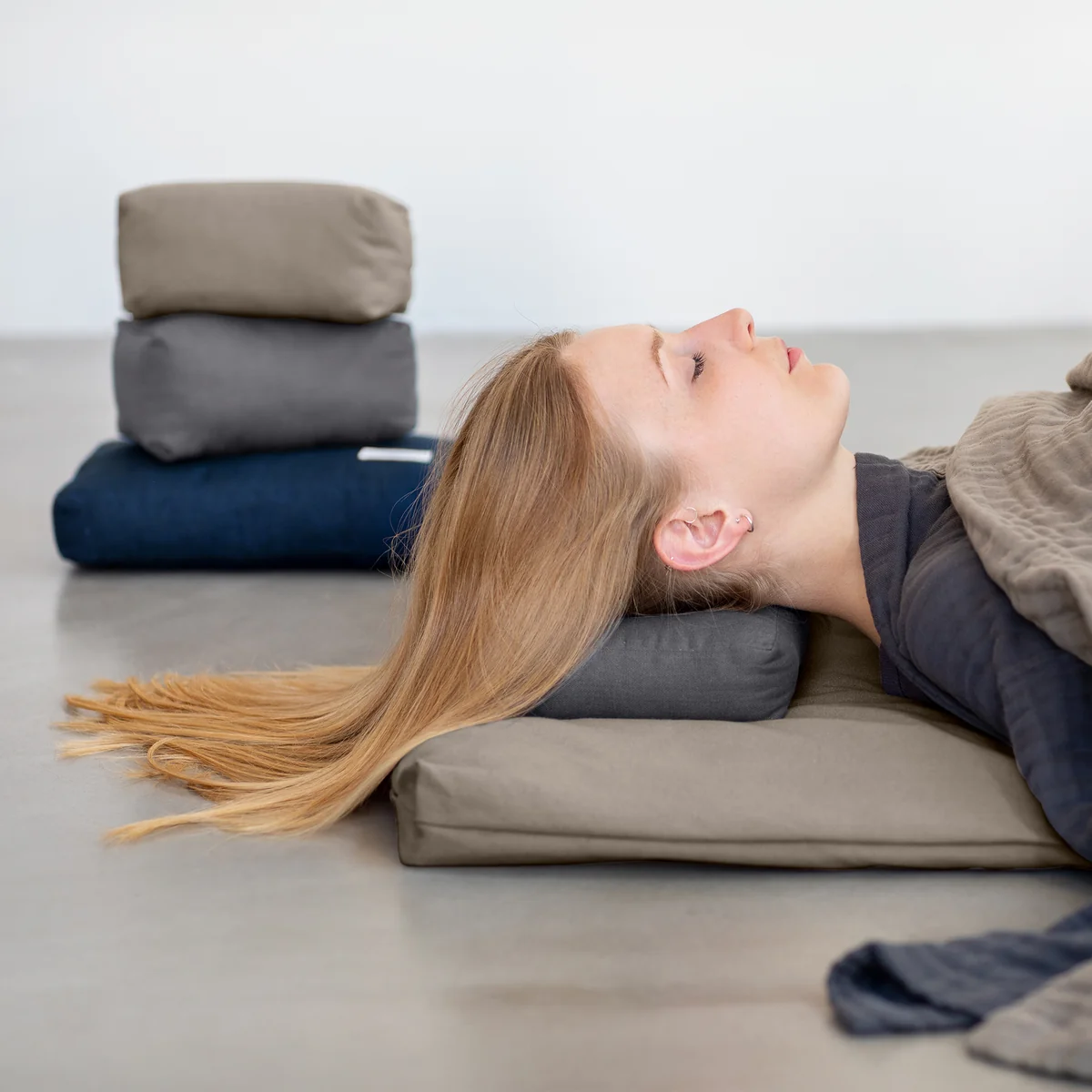 Der Bezug der Meditation Matte wird aus Bio-Baumwolle gefertigt. Die Matte kann wunderbar mit dem passenden Meditationsblock und/oder dem Relax- und Meditationskissen kombiniert werden.