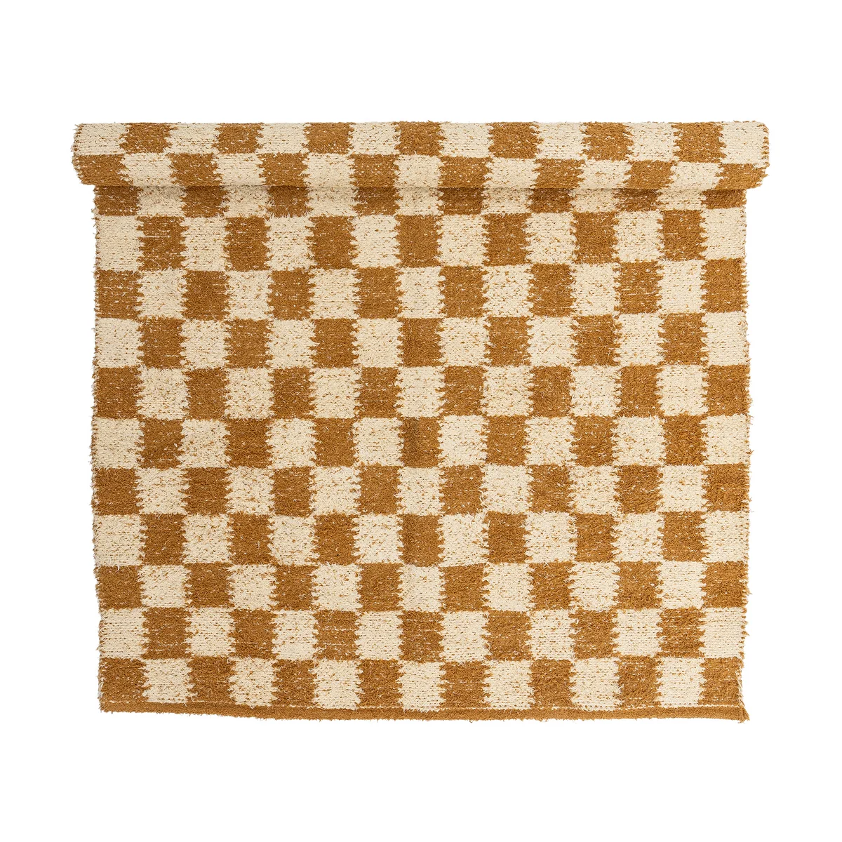 Der Chola Teppich von Bloomingville bringt mit seinem gewebten Muster in warmen Tönen stilvolle Behaglichkeit in Ihr Zuhause. Aus hochwertiger Baumwollmischung gefertigt, überzeugt der Teppich durch sein dichtes Gewebe, das für eine angenehme Haptik sorgt und gleichzeitig als dekoratives Element wirkt. Ob im Wohnzimmer, Schlafzimmer oder Eingangsbereich – der Chola Teppich verleiht jedem Raum eine elegante Note und natürliche Wärme.
