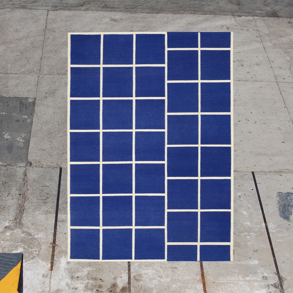 Der Kelim Untitled_AB14 Teppich von Alain Biltereyst für den dänischen Hersteller Kvadrat erinnert mit seinem Raster-Design an tektonische Platten. Der Teppich besticht mit seinen geometrischen Proportionen und dynamischen Formen. Untitled_AB14 sorgt gleichzeitig für einen tollen Warm-Kalt-Kontrast. Der Kelim Teppich wird - wie der Name bereits verrät - über das Kelim Herstellungsverfahren handgewebt. Es empfiehlt sich eine Teppichunterlage zu verwenden. Kelim Untitled_AB14 ist in unterschiedlichen Farbkombinationen erhältlich.