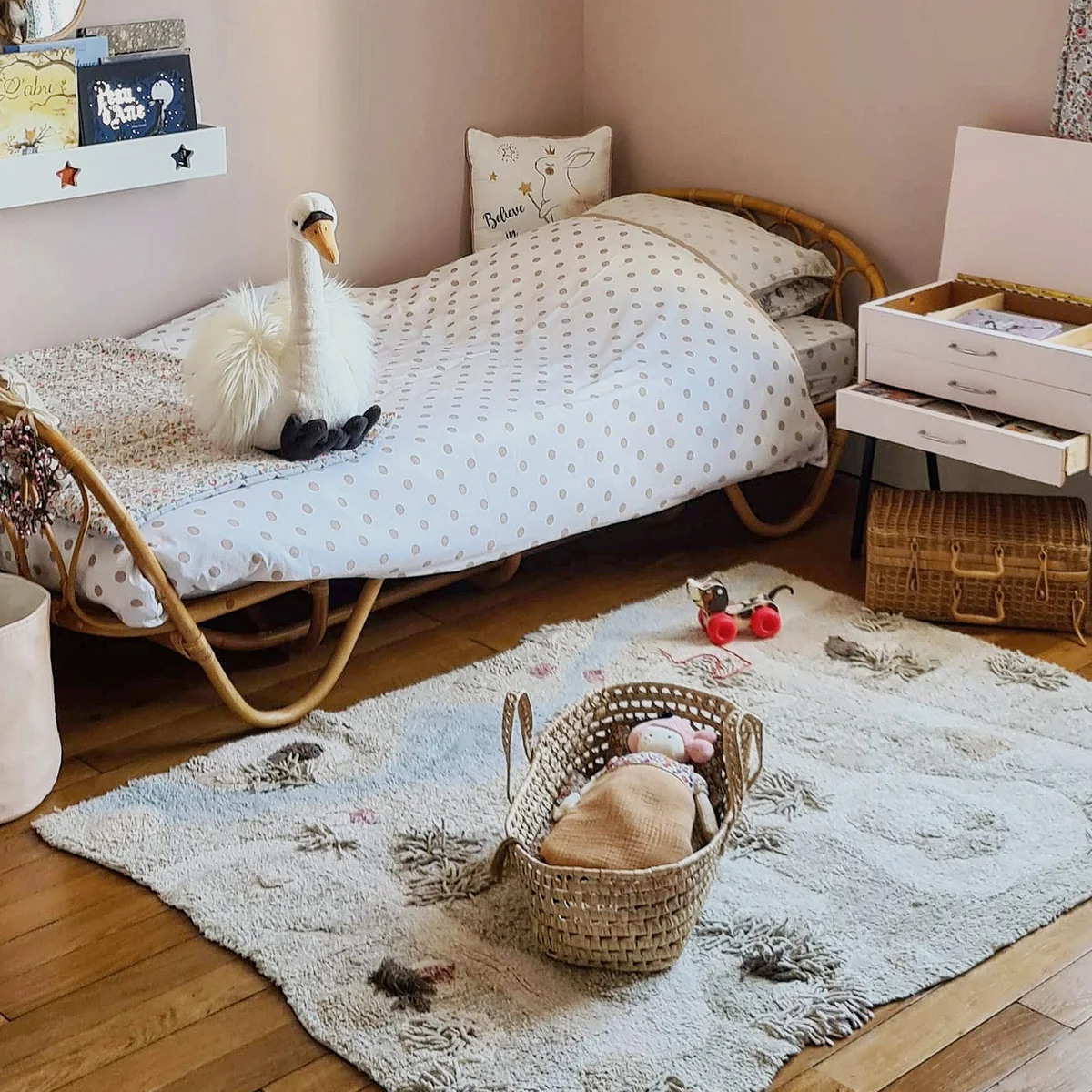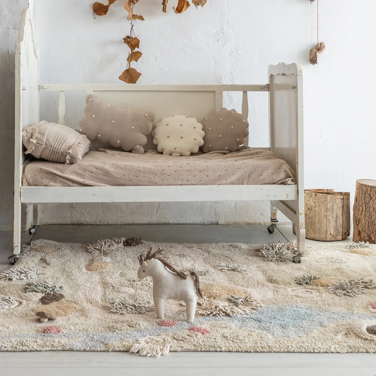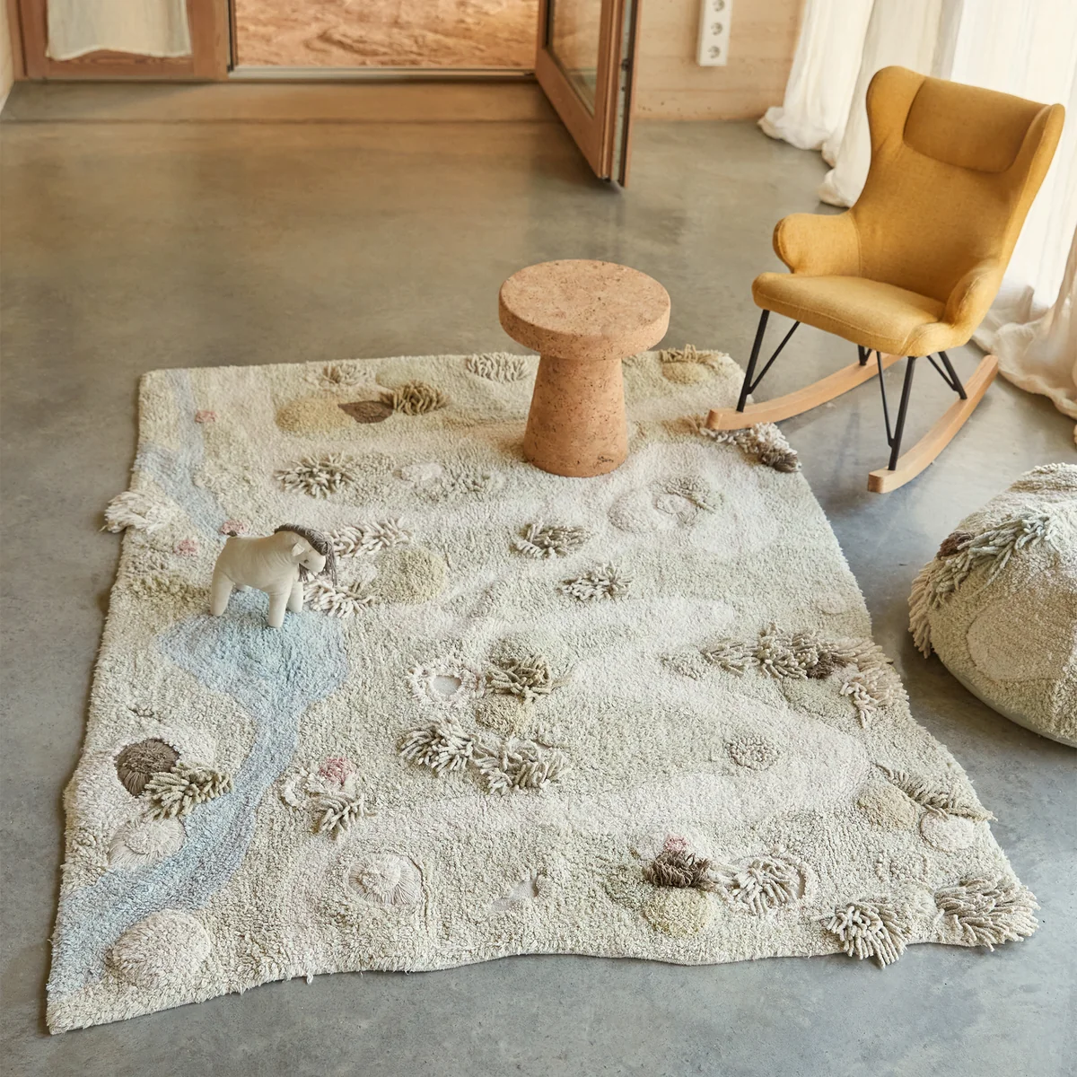 Lorena Canals - Path of Nature Spielteppich mit Spielpferd, 120 x 160 cm, natur / grün / rose (3er-Set)
