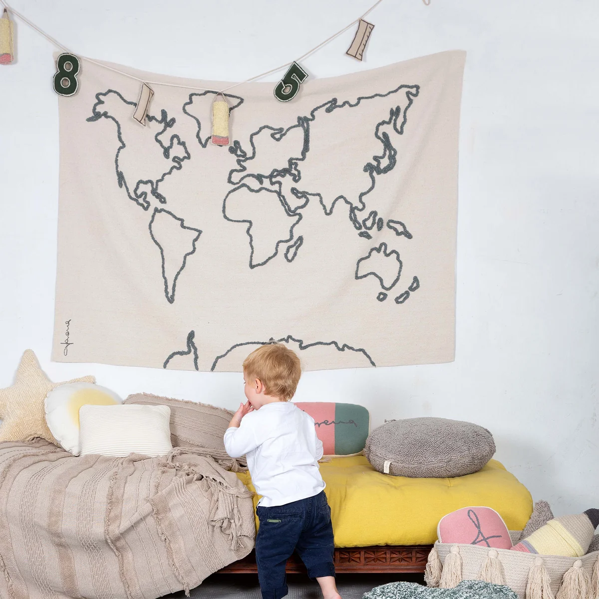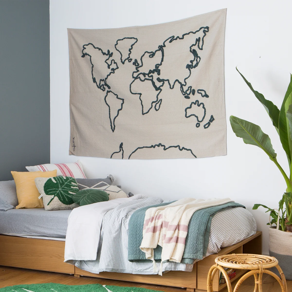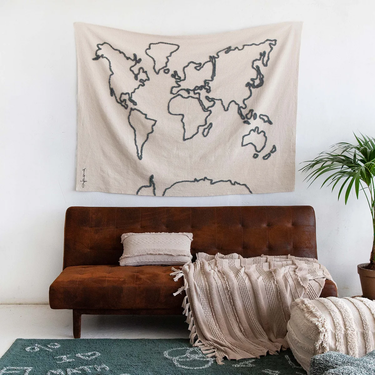 Der Wandteppich aus dem hause Lorena Canals besticht mit seiner kunstvoll bedruckten Leinwand. Dieses dekorative Wandaccessoire besticht mit eine Vielzahl von unterschiedlichen Designs. Der Wandteppich wird aus recycelter Baumwolle gefertigt und anschliessend über einen Bambusstab mit Baumwollüberzug befestigt. Die Variante Weltkarte verfügt über keinen Bambusstab und ist als einzige Ausführung waschbar.