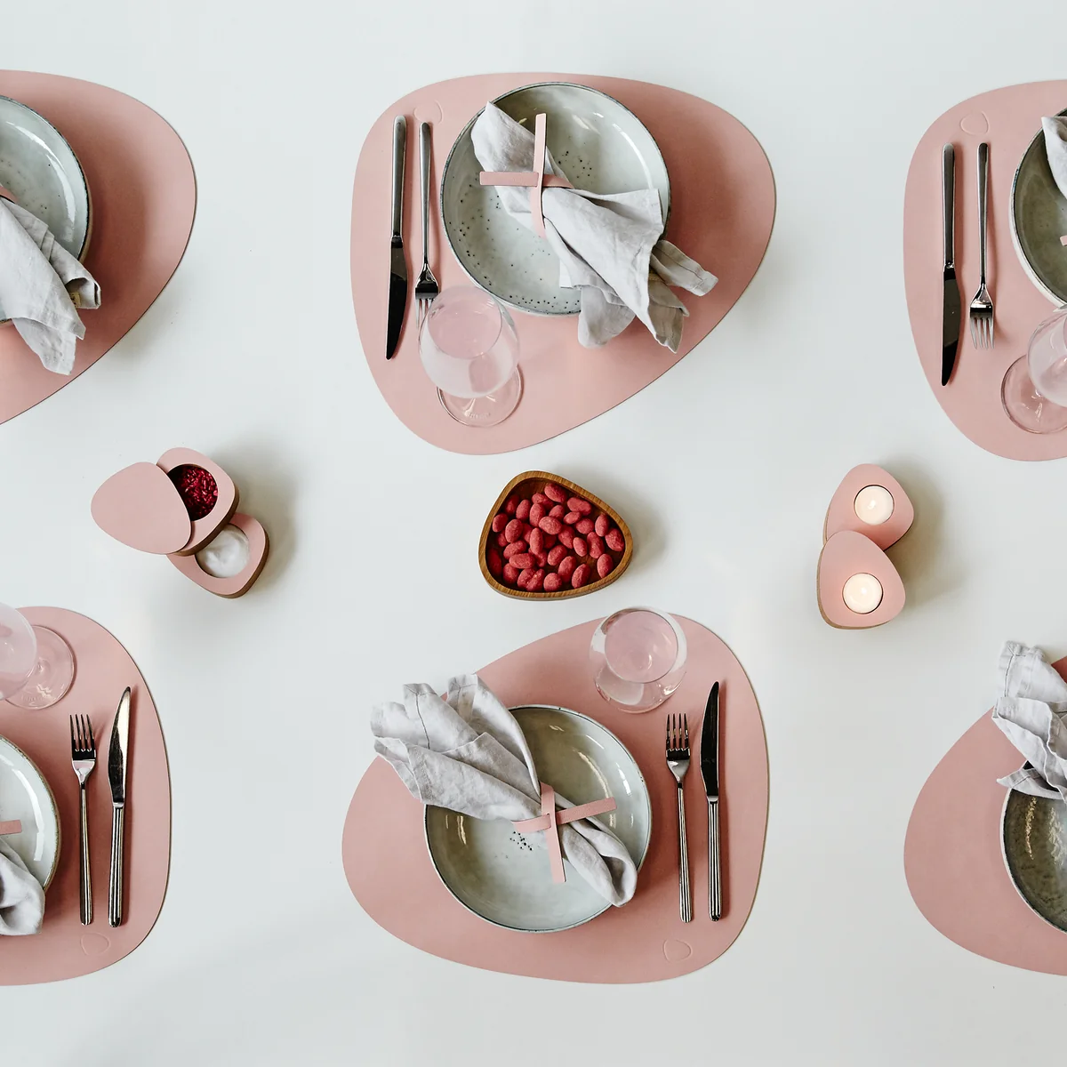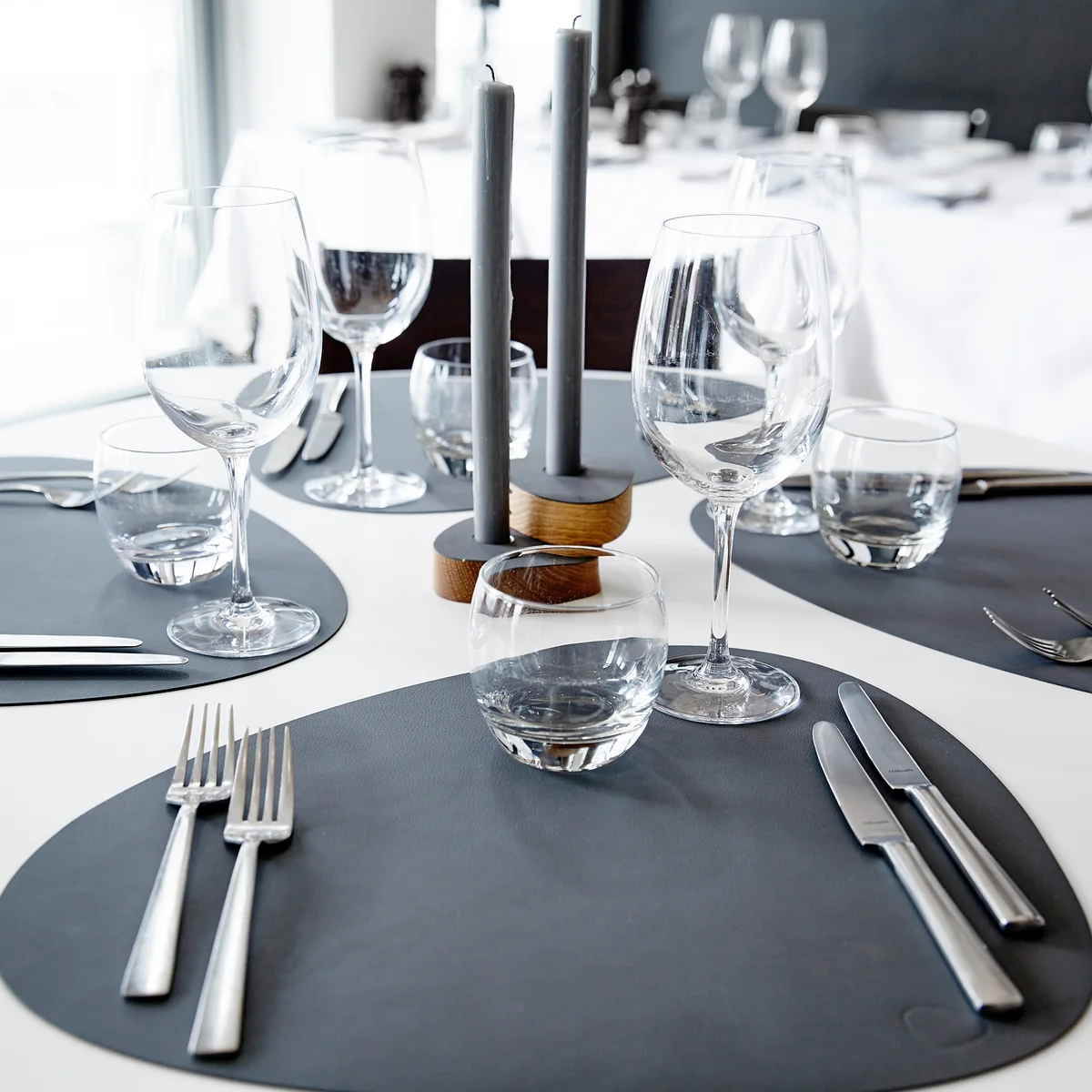 Die Curve L Tischsets von Lind DNA sind in unterschiedlichen Lederoberflächen und Farben erhältlich.