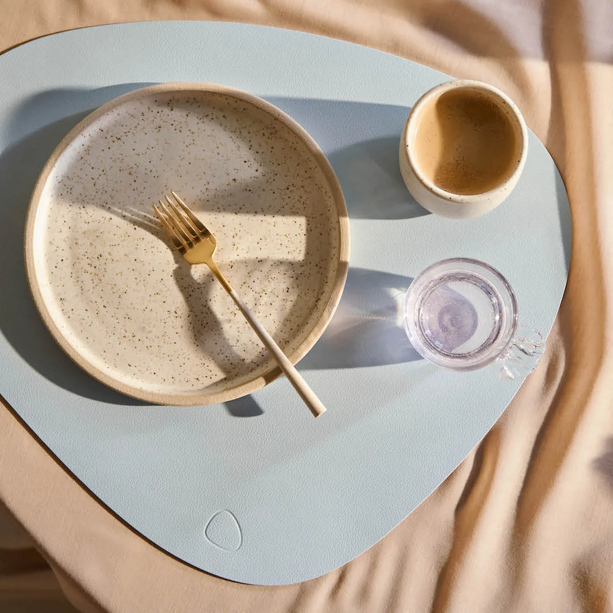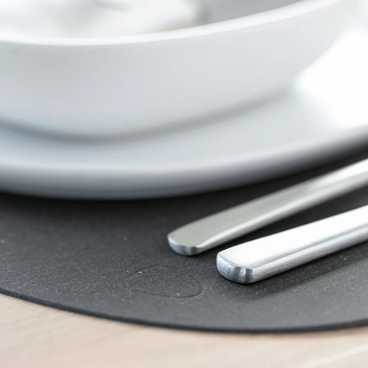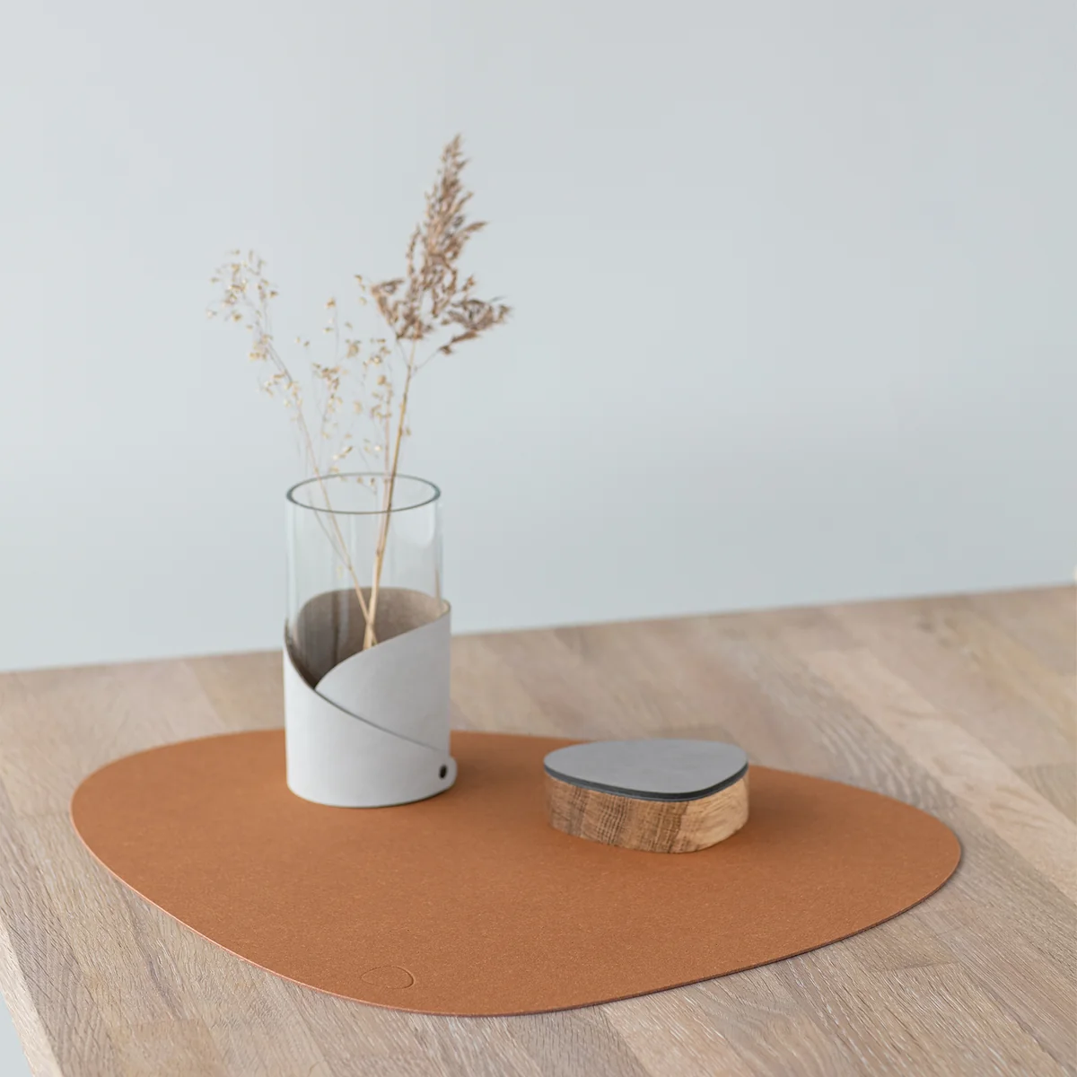 Das Tischset Curve L von Lind DNA ist die erste Tischunterlage aus recyceltem Leder. Die Unterlage ist wasserfest und leicht zu reinigen. Die kurvige, organische Form ist typisch für das Lind DNA Design und dabei schlicht aber dekorativ.