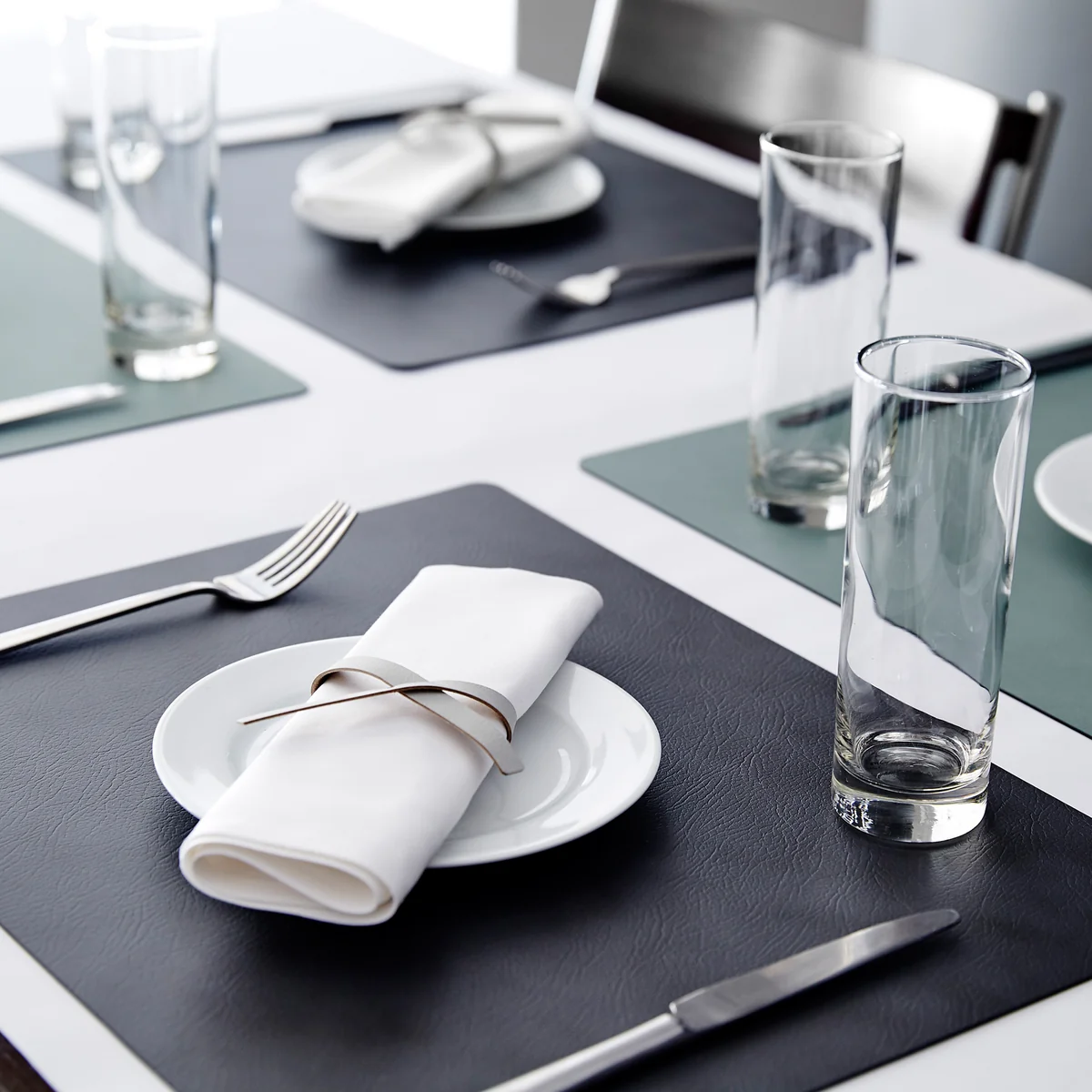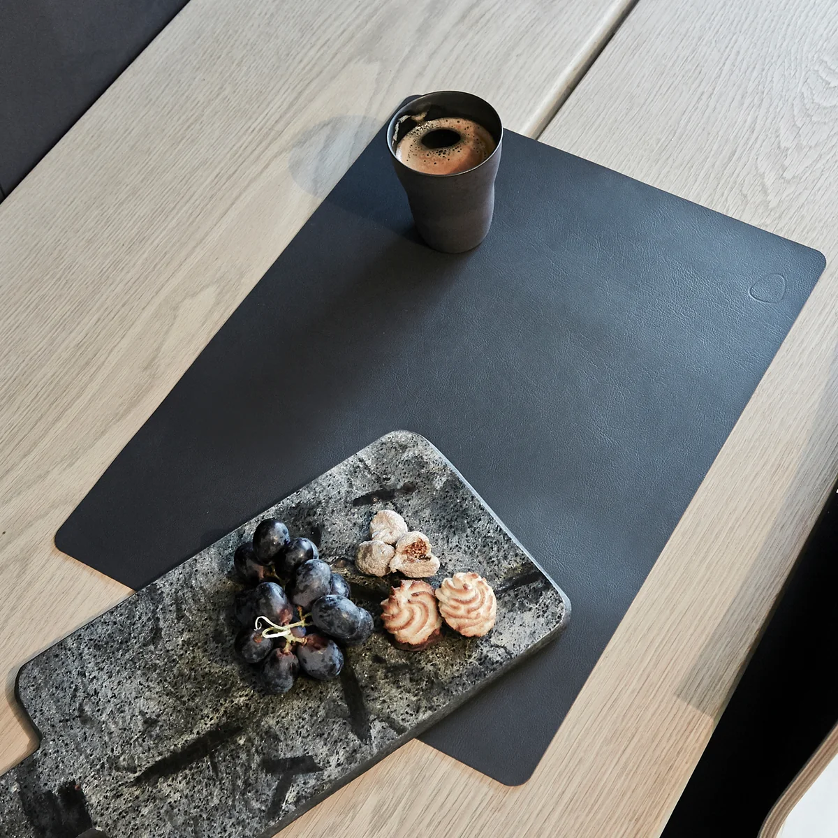 Das Tischset Square L von Lind DNA ist eine Tischunterlage aus recyceltem Leder. Die Unterlage ist wasser- und schmutzresistent und lässt sich mit einem Tuch oder Glasreiniger leicht reinigen. Die Unterlage ist schlicht aber dekorativ.