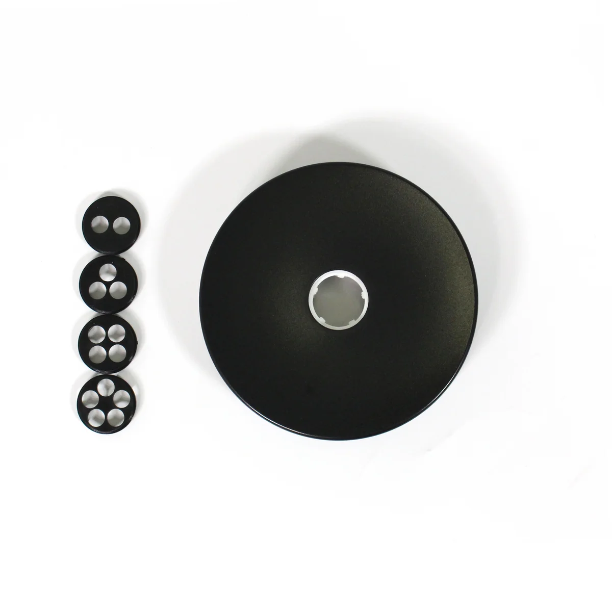 Für die Anordnung mehrerer AIM-Leuchten in einem Raum bei gleichzeitiger Nutzung einer einzigen Stromquelle bietet Flos den Mehrfach-Baldachin für die AIM LED-Pendelleuchte als Zubehör an. Mit dem Mehrfach-Baldachin können die Kabel zusammengefasst und homogen angeordnet werden, während die Positionierung der Leuchtenköpfe weiterhin völlig frei ist.
