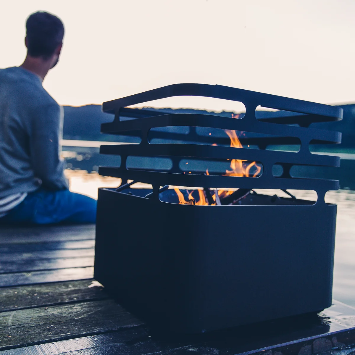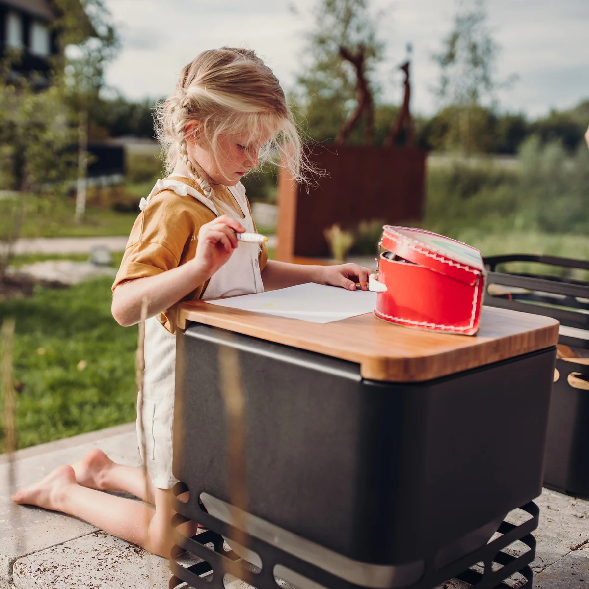 Der Cube von höfats ist viel mehr als einfach nur ein Feuerkorb. Denn er ist der wohl sicherste Feuerkorb der Welt, der auf Kommando ausgeht. Das Auflagebrett aus Bambus macht den Feuerkorb zu einem Hocker, einer Bank oder einem kleinen Beistelltisch.