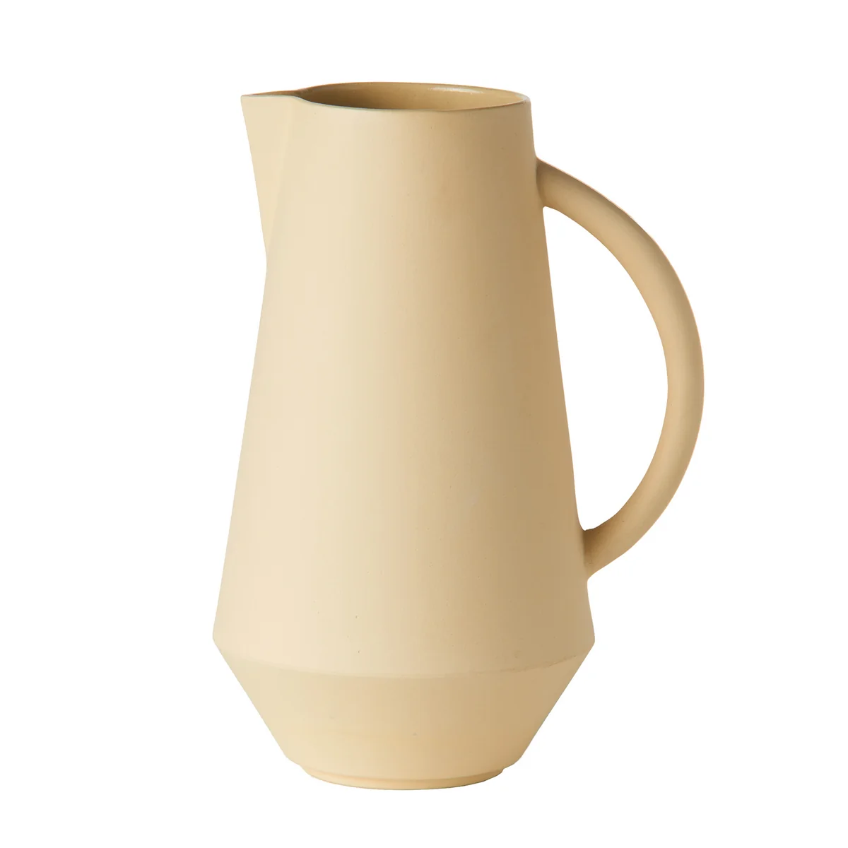 Die Keramik Karaffe von Schneid ist mit verschiedenen Pigmenten gefärbt und nur von innen glasiert, um aussen eine rohe und natürliche- Keramikoberfläche zu behalten. Die Karaffe ist ideal für Saft, Tee, Kaffee oder Kakao geeignet und lässt sich mit jedem Teil der Unison-Geschirr-Serie kombinieren. Diese hat übrigens den German Design Award 2017 gewonnen.