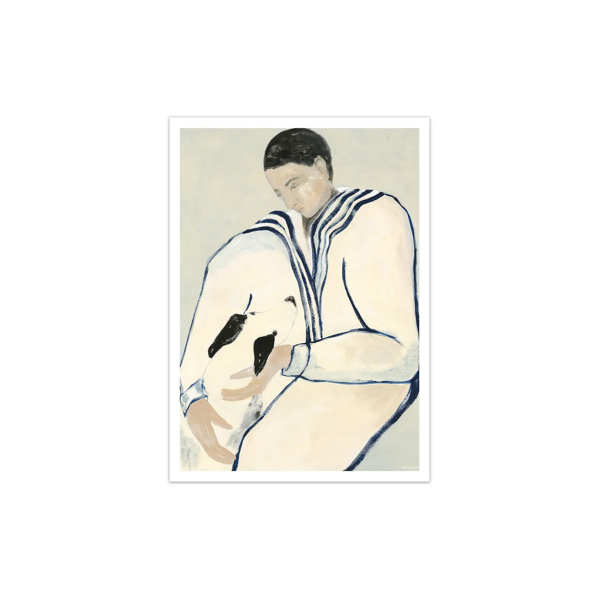 Der Man and Dog Kunstdruck von Sofia Lind für The Poster Club. Gedruckt auf 265g natürlichem, hochwertigem Kunstdruckpapier mit einer matten, ungestrichenen Oberfläche und einer leicht strukturierten Oberfläche für eine lebendige Farbdarstellung. Produziert in Dänemark.